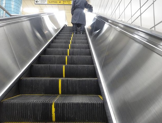 ในสถานีจะมีทั้งบันไดธรรมดา และบันไดเลื่อน ซึ่งบันไดที่เกาหลี จะต้องเดิน "ชิดขวา" เสมอนะคะ ตรงนี้ต้องจำให้แม่น เพราะช่องซ้าย ไว้สำหรับคนที่รีบเขาจะวิ่งขึ้นลงบันไดกันค่ะ ถ้าเราไม่รู้แล้วไปยืนขวาง หากมีคนรีบๆ อยู่ด้านหลังเรา โดนด่าไม่รู้ด้วยนะคะ